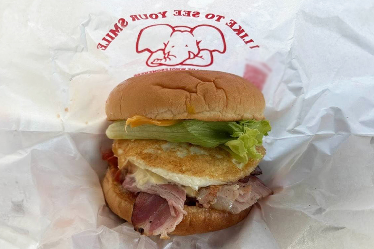 ベーコン、レタス、目玉焼きまで入っていて、めっちゃボリューミー