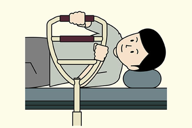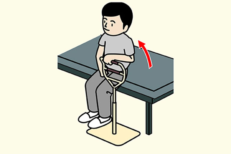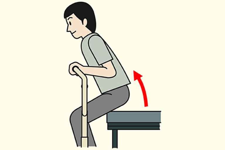 手すり上部が45度に曲がっているため、少しでも遠くを握る意識を持ってもらう事で、前傾姿勢がとりやすく、立ち上がりしやすくなっています。