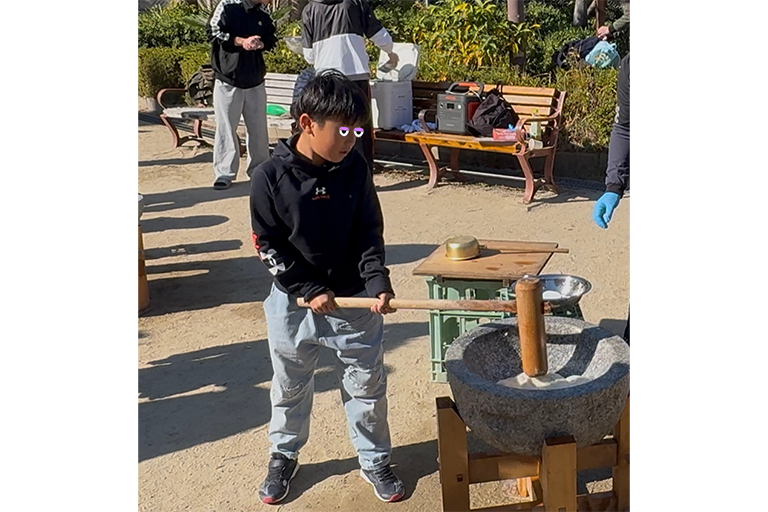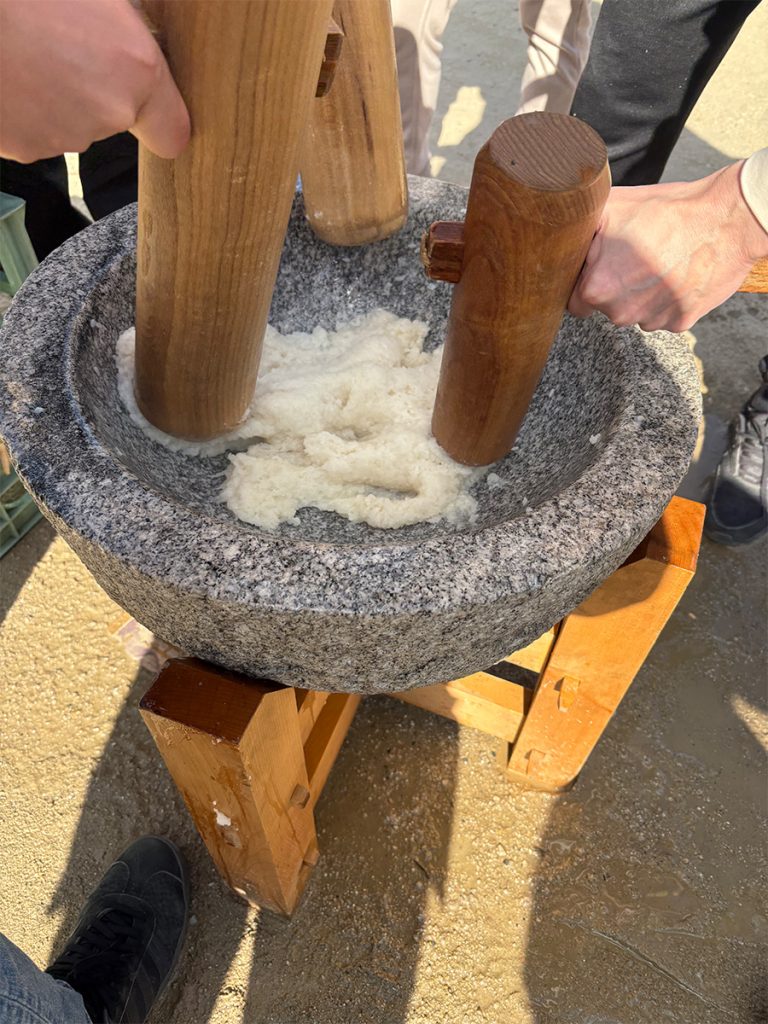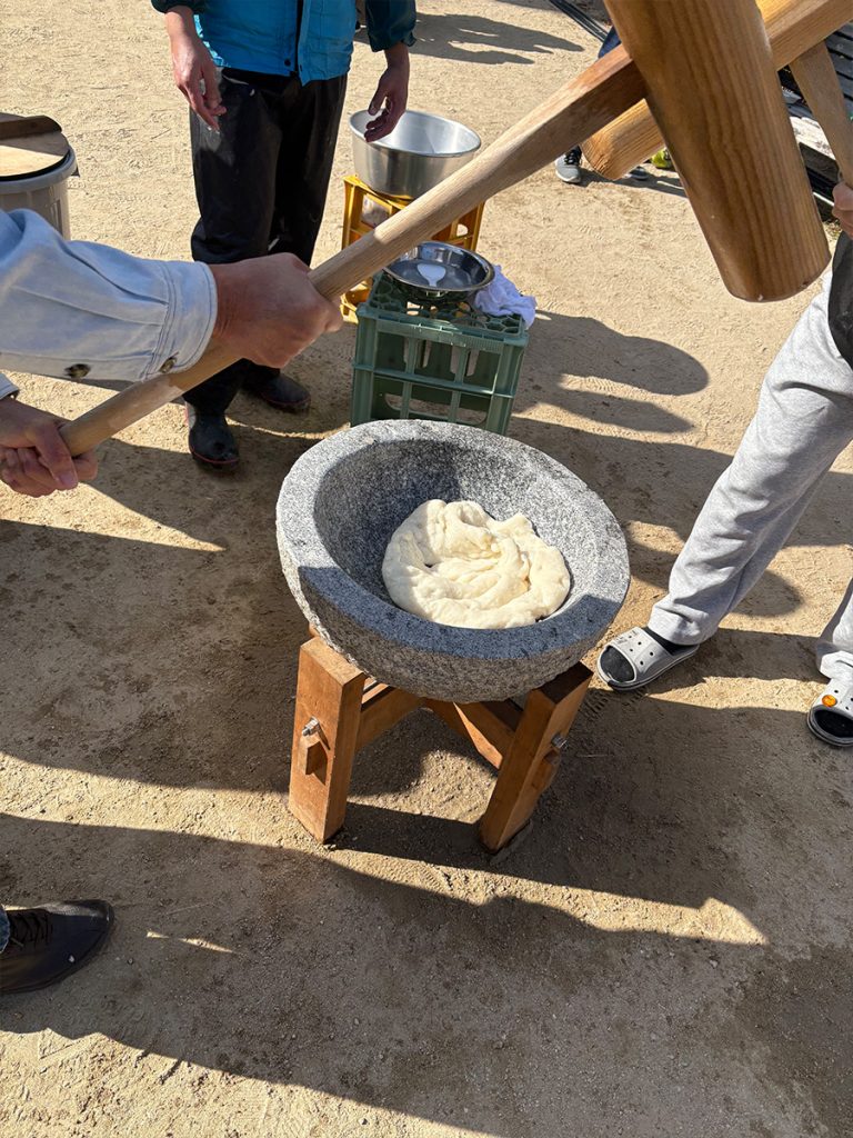 早朝から火起こし、もち米を蒸すこと40㎏💦