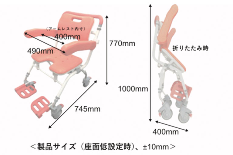 一般的なシャワーキャリー(シャワー用車いす)と比較するとコンパクト設計で、在宅でも使い易い商品となっております( ゚Д゚)!