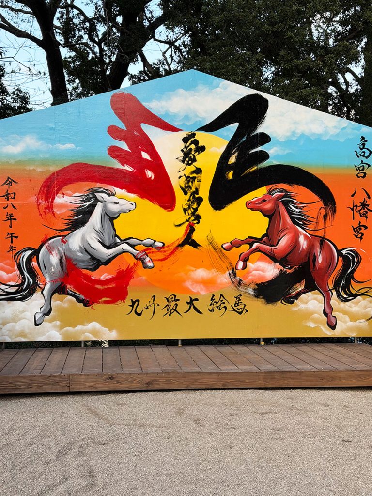 巨大な絵馬も飾られており、「九州最大級絵馬プロジェクト」で世界的に活躍中の