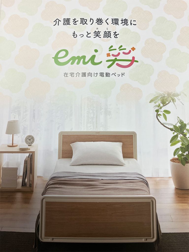 在宅介護向けベッドの「Emi笑(エミ)」は、シーホネンス株式会社が提供する、利用者の自立支援と快適なポジショニングを追求した電動ベッドシリーズです。