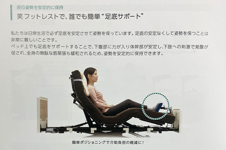 特に「頭頸部の角度調整(ヘッドレスト機能)」に優れており、誤嚥予防や床ずれリスクの低減、視界の確保に大きな強みがあります。
