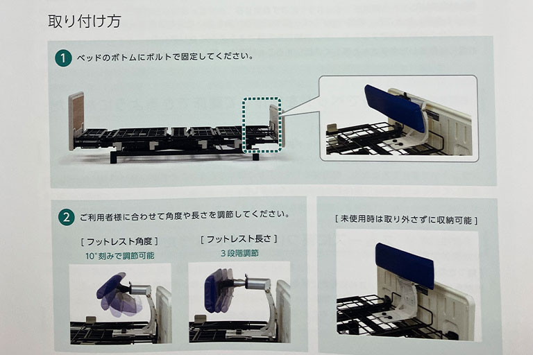 ● オプションや工具を使わずに、現場でベッドの長さを「ショート・レギュラー・ロング」の3段階に切り替えられます。利用者の身長や部屋の広さに柔軟に対応可能です。